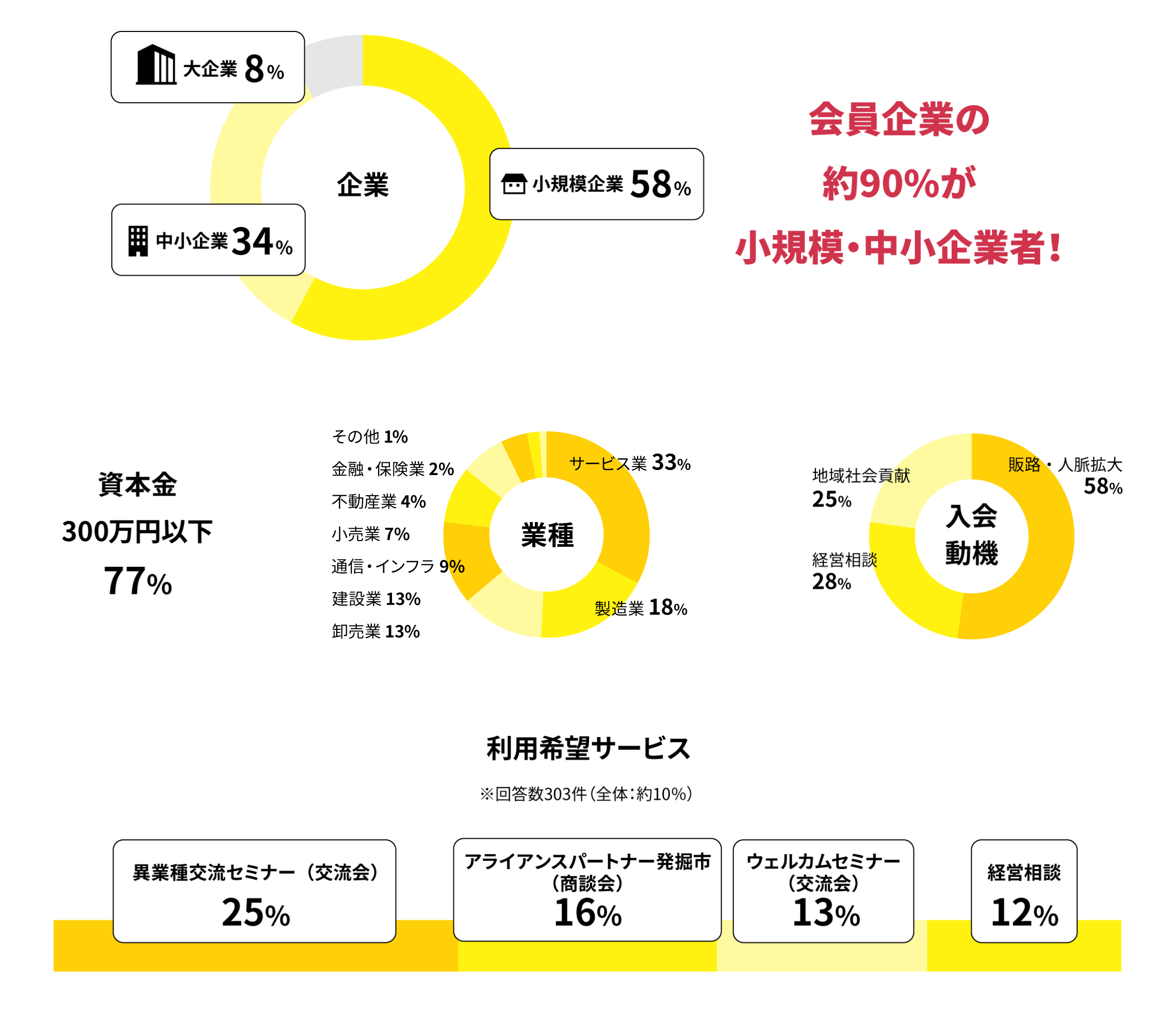 多彩なセミナーで業界最前線の知識を効率的に獲得し、活発な異業種交流会で新たなビジネスパートナーとの出会いを飛躍的に拡大。貴社の成長を強力に後押しします。